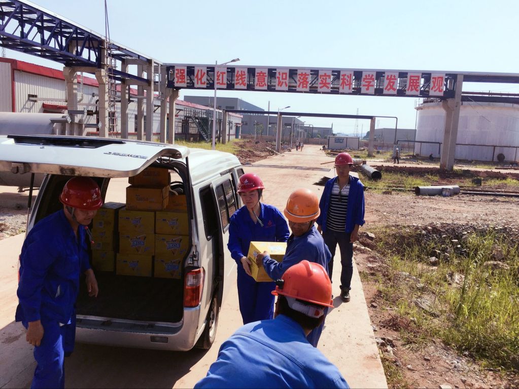 時值夏季,烈日炎炎,酷熱難耐。奮戰在一線員工們的身體健康狀況牽動著公司領導的心。7月17日下午,安慶分公司經理史崇松,黨支部書記劉紅艷深入一線,看望慰問奮戰在一線的施工人員,并帶上了清涼解暑的飲品,為他們在炎熱的夏季送去了一份清涼。