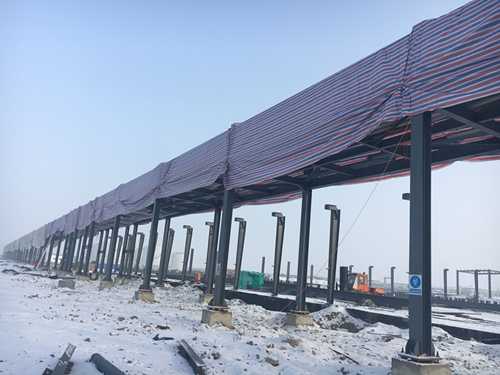 管廊整體搭設(shè)棚子,防止鋼結(jié)構(gòu)上出現(xiàn)雪和霜
