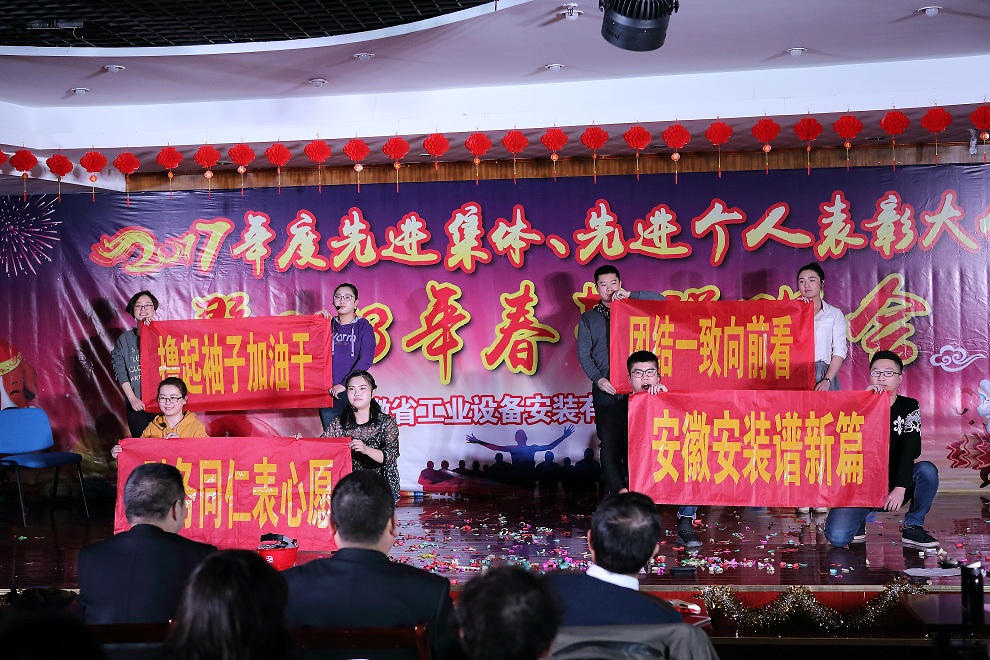 彩鳳辭舊歲,金犬迎新春。2月8日下午,安徽安裝公司2018年迎新春聯歡會如期舉行。公司領導及全體員工200余人歡聚一堂,共迎新春佳節(jié),共享節(jié)日喜悅!