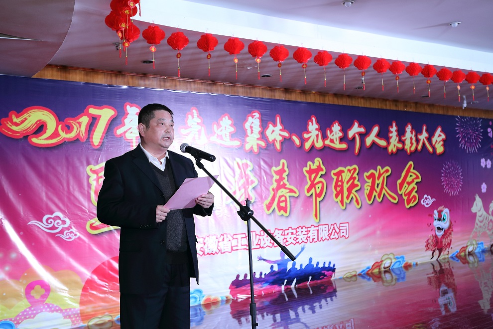 公司董事長、總經理王軍邦發(fā)表了熱情洋溢的新年致辭。他指出,2017年,集團公司整體上市成功,公司作為集團產業(yè)鏈安裝板塊的重要一環(huán),順利實現整體上市。公司上下緊扣發(fā)展第一要務,聚精會神抓黨建,一心一意謀發(fā)展,團結奮進,扎實工作,實現產值12.28億元,合同額15.52億元,利潤突破千萬元,創(chuàng)歷史新高;新疆市場進一步開拓,承接了安裝公司有史以來最大的新疆烏蘇管廊項目3.59億元。在集團的大力支持下,中標新疆市場博爾塔拉蒙古自治州兩個PPP項目,共計39.79億元,全面超額完成年度各項指標任務。這些成績的取得凝聚著安徽安裝人的心血和汗水,是我們眾志成城、頑強拼搏、砥礪奮進的結果;2018年,讓我們統一思想、齊心協力,用智慧、靠實干、憑業(yè)績,主動作為,為開創(chuàng)安徽安裝發(fā)展新局面而持續(xù)奮斗!