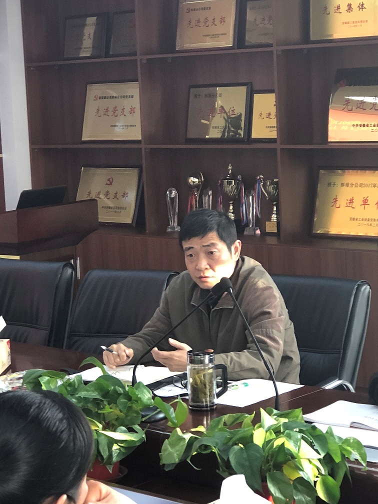 劉安俊副總經(jīng)理對會議充分肯定的同時,提出了五點要求:一是要把“四個意識”、“四個自信”落到實處,把黨建工作與生產(chǎn)經(jīng)營、企業(yè)發(fā)展相結(jié)合,杜絕“兩張皮”現(xiàn)象;二是2018年是蚌埠分公司經(jīng)營的關(guān)鍵年,要抓目標(biāo)、細(xì)落實,全力以赴把經(jīng)營工作做好,培養(yǎng)重要客戶源,形成差異化、專業(yè)化經(jīng)營,建立分公司經(jīng)營大格局;三是從分公司發(fā)展的戰(zhàn)略高度,繼續(xù)改善人力資源狀況,進一步提升班子成員、黨員干部的專業(yè)水平,發(fā)揮示范引領(lǐng)作用;四是加強學(xué)習(xí),提升全員對安全的關(guān)注度,不斷提高項目質(zhì)量,嚴(yán)把項目成本;五是完善制度建設(shè),強化制度執(zhí)行力度,加強分公司文化建設(shè)。劉安俊強調(diào),2018年開啟發(fā)展新征程,希望分公司班子成員、全體黨員以飽滿的熱情投入到工作中,充分發(fā)揮模范帶頭作用,在全面完成各項指標(biāo)的同時不斷提升蚌埠分公司整體實力。