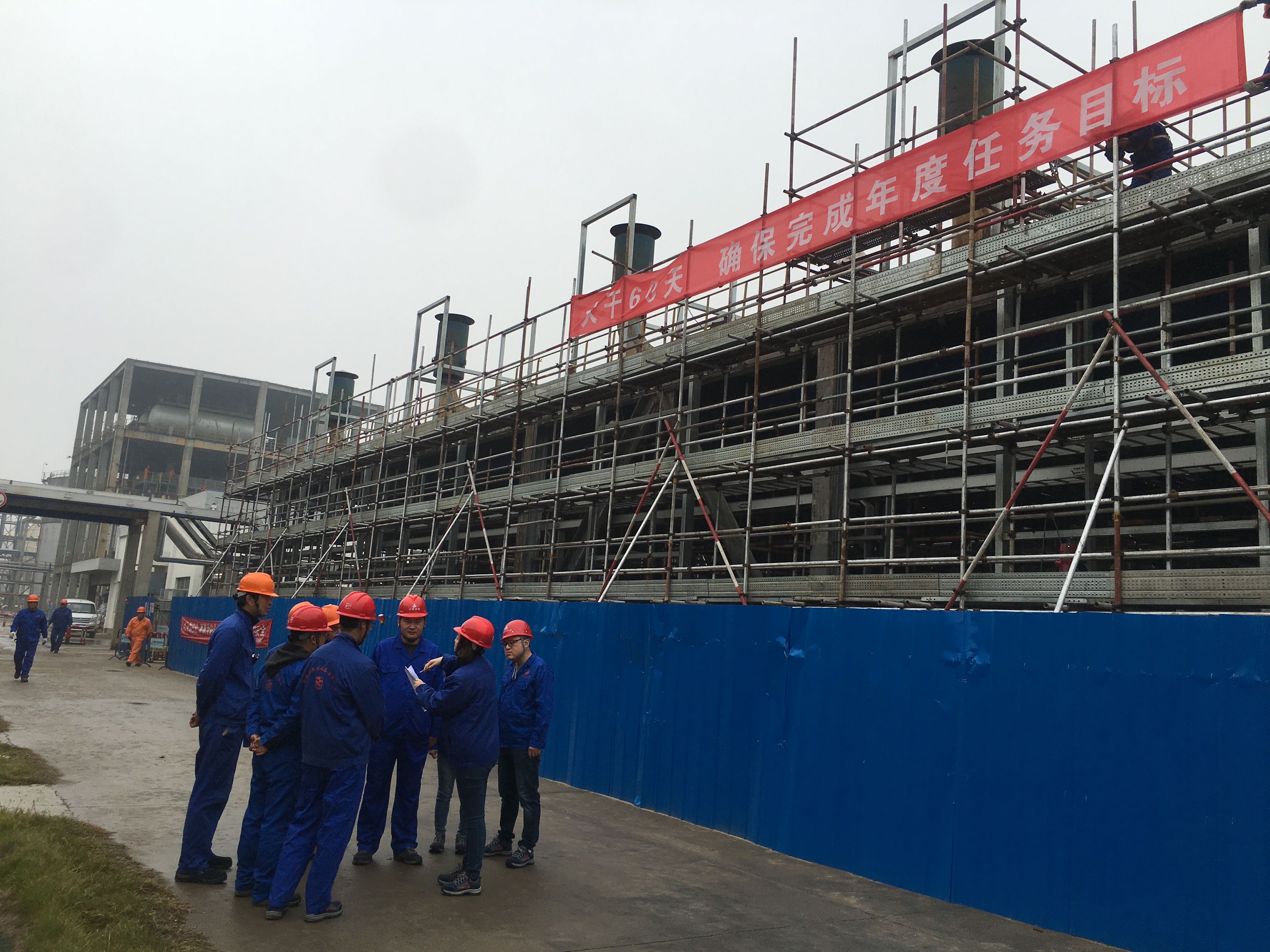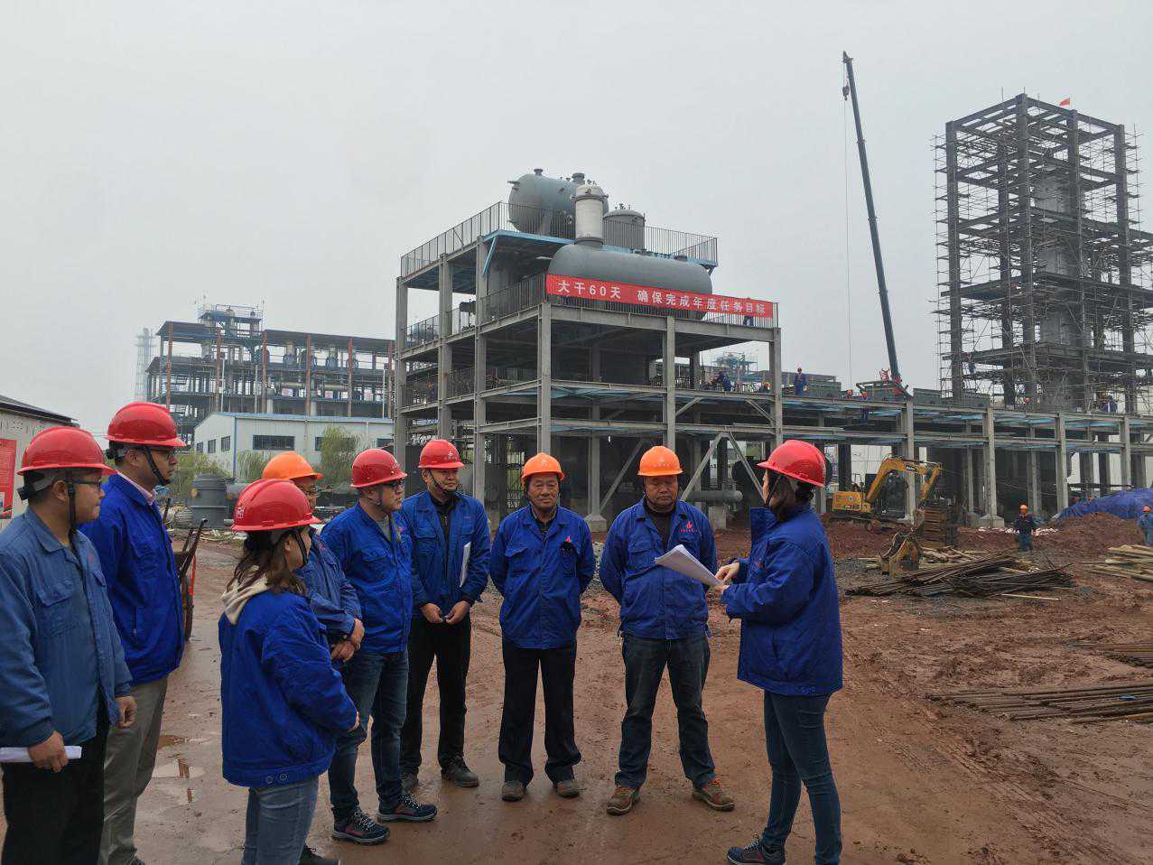 為響應公司“大干60天”勞動競賽活動,把此項活動落到實處,11月15日上午,安慶分公司黨支部書記、工會主席、副經理劉紅艷攜相關管理人員冒著綿綿細雨前往分公司承建的“安徽力天環??萍脊煞萦邢薰驹鏊軇┭b置循環產業鏈建設項目5萬噸/年苯酐裝置項目”和“中石化安慶分公司水污部污水處理場鼓風機降噪改造項目”兩個參賽的工程施工現場督導檢查競賽開展情況,以此推進勞動競賽的實施,促進項目的順利完工。