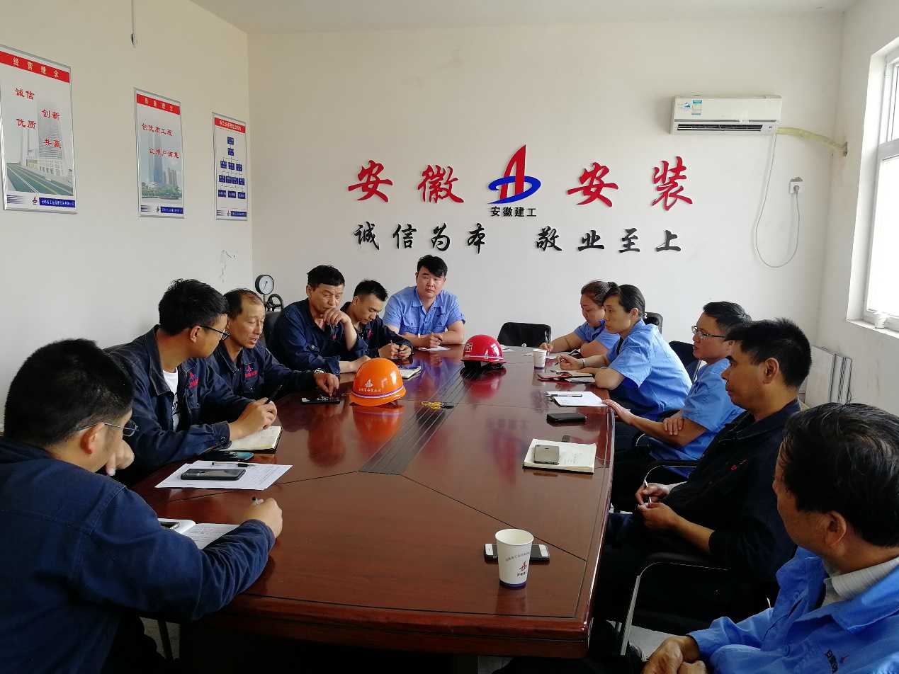 在對施工現(xiàn)場進(jìn)行全面安全檢查后,隨即在會議室召開會議,項目部全體管理人員及各項目班組負(fù)責(zé)人參加。項目執(zhí)行經(jīng)理張漢軍首先匯報了現(xiàn)場的進(jìn)度、質(zhì)量等情況。