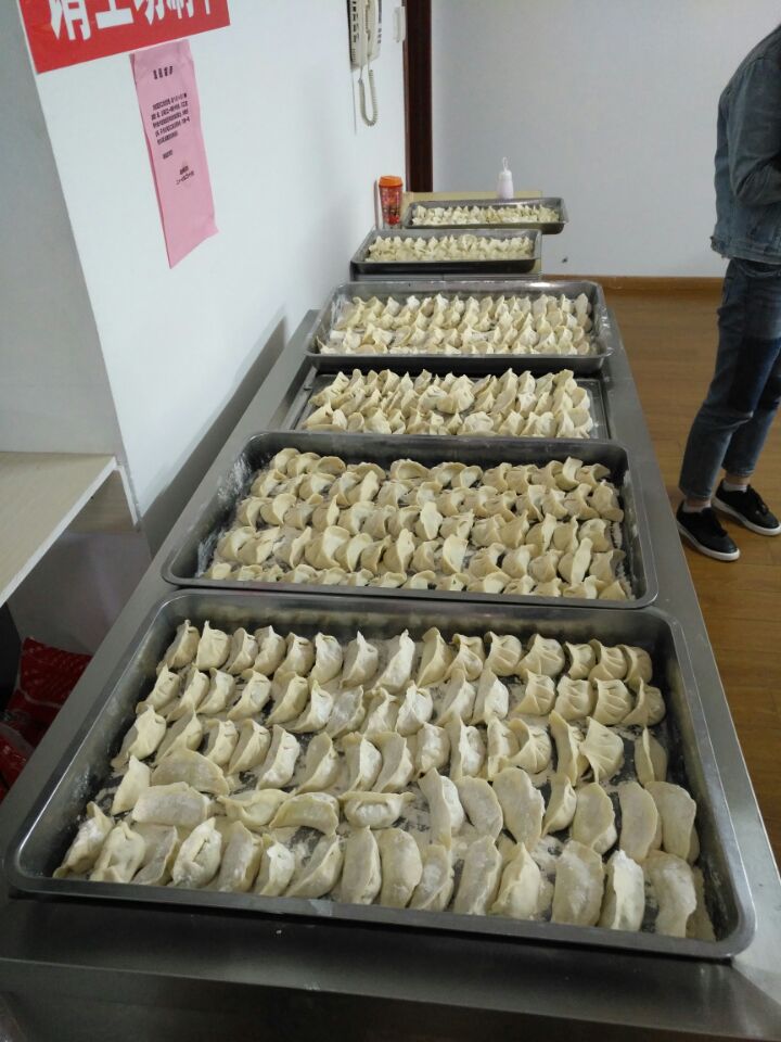 公司工會和后勤保障部為本次活動作了精心的籌備,協調職工食堂準備好了各種材料,參加活動的女職工自帶刀具、搟面杖。上午9時許,30多名女職工齊聚職工食堂。她們個個大顯身手,忙得不亦樂乎……你和面,我搟皮,她包餃子,一道道工序有條不紊,只見女職工們一手托著餃子皮,一手夾著肉餡,舞動著靈巧的手指,一個個精致漂亮、形態各異、不乏創意十足的餃子就在她們手中成形,在托盤里擺開陣勢,形成了一道靚麗的風景。就在你追我趕、歡聲笑語、交流手藝中,1200多個餃子新鮮出爐!有的女職工還不忘把自己的作品拍照傳到微信朋友圈中“曬曬”。臨近中午,餃子下鍋了,誘人的香氣四散開來,令人垂涎欲滴。女職工們你盛一碗,我盛一碗,與剛剛下班的男職工們圍座在一起,一邊回味著活動的快樂,一邊品嘗著勞動的成果,其樂融融地盡情共享餃子盛宴,共同度過一個輕松愉快且有意義的節日。