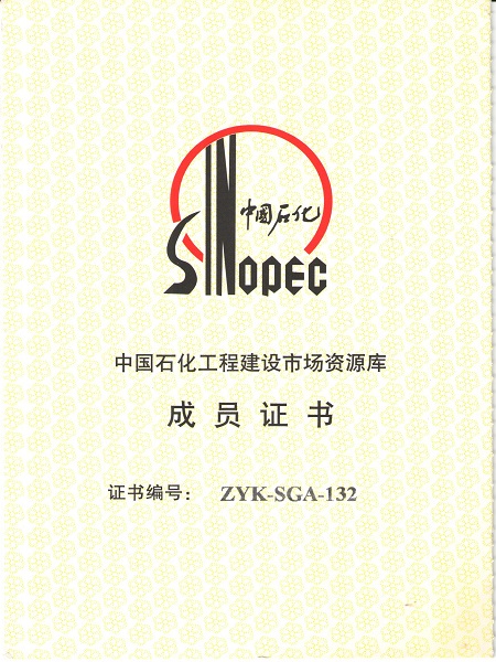 中國石化工程建設(shè)市場資源庫成員證書