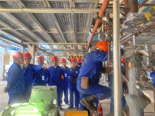 高飛、劉安俊一行深入項目一線,先后來到乙苯苯乙烯項目、煉油一部新增機泵密閉排放系統項目、催化裂解項目及Ⅰ、Ⅱ硫磺回收裝置增設煙氣后堿洗項目等工地進行調研指導。每到一處,在認真聽取項目負責人關于項目概況、工程進度等方面的匯報之后詳細了解工程施工前期準備人員組織、關鍵環節管控等情況,仔細詢問目前施工組織遇到的困難及解決措施。