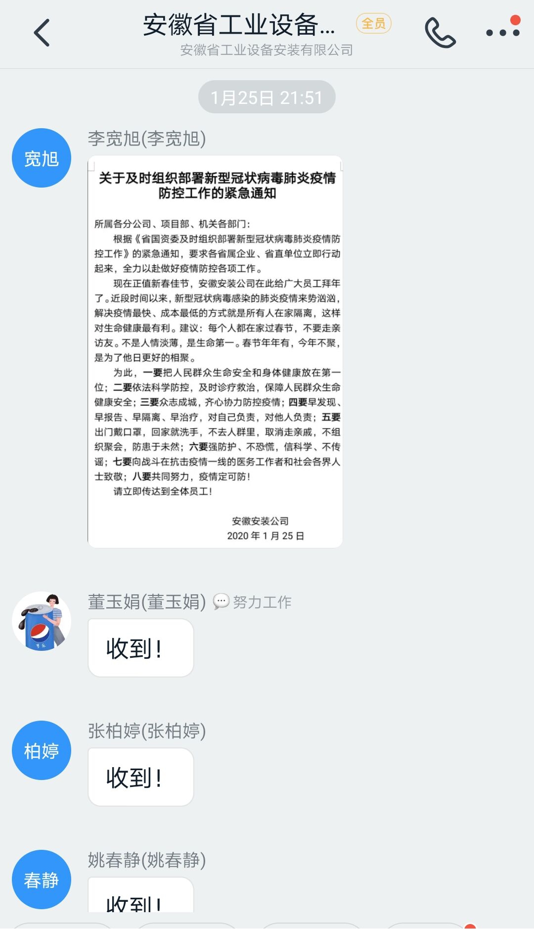 根據《省國資委及時組織部署新型冠狀病毒肺炎疫情防控工作》的緊急通知,要求各省屬企業、省直單位立即行動起來,全力以赴做好疫情防控各項工作,1月25日發出緊急通知,部署具體要求,立即傳達到全體員工。