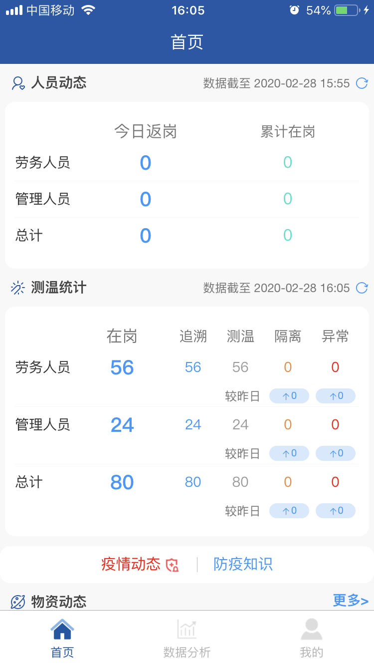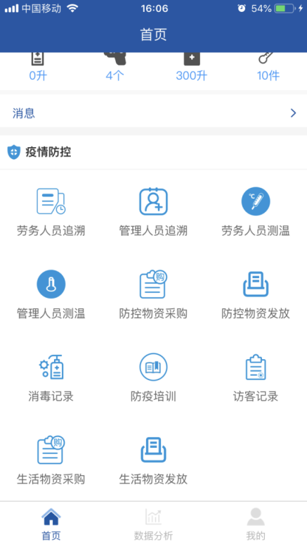 項(xiàng)目全面推行“返崗復(fù)工疫情防控系統(tǒng)”APP。主頁面包括勞務(wù)人員追溯、勞務(wù)人員測溫、防控物資采購、消毒記錄、疫情培訓(xùn)等11個(gè)專題版面,通過這些功能可線上及時(shí)填報(bào)人員返崗日期、體溫、癥狀及是否為留守人員等詳細(xì)信息,還有項(xiàng)目部的疫情物資采購情況、環(huán)境衛(wèi)生的消殺情況等相關(guān)信息,使上線人員時(shí)時(shí)了解疫情防控動態(tài),充分借助信息技術(shù)手段,全力打贏疫情防控“戰(zhàn)役”。 借助這一平臺確保項(xiàng)目部實(shí)時(shí)、準(zhǔn)確、有效地掌握現(xiàn)場人員的健康情況,助力疫情防控工作。