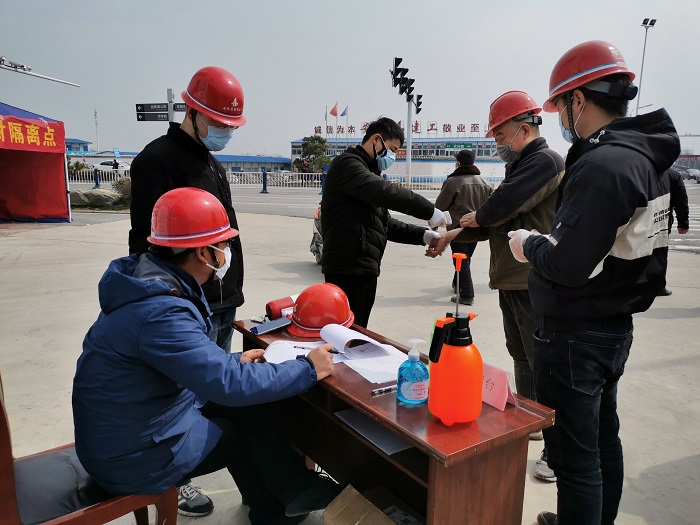 看得見的防疫配備,還有落在實(shí)處的防疫舉措。項(xiàng)目部開展員工返崗前14天健康在線管理,每位員工每日體溫、身體狀況、居住地、活動軌跡等信息,每天線上打卡、全員覆蓋。實(shí)行“生產(chǎn)網(wǎng)格化、吃住軍事化”,員工入“格”后,現(xiàn)場、宿舍、食堂“三點(diǎn)一線”管理,餐廳座位隔單排、菜飯統(tǒng)一打、就餐時(shí)間拉長,衛(wèi)生區(qū)域增加管理人員,人員分類管理,將返崗復(fù)工人員控制在最小單元,確保安全。同時(shí),生產(chǎn)流程重組,按項(xiàng)目緩急逐步恢復(fù)生產(chǎn)。
