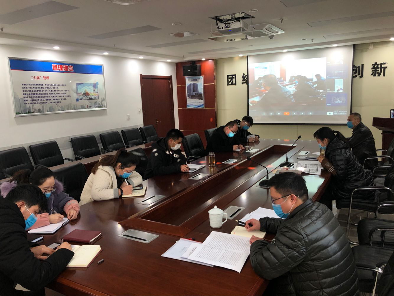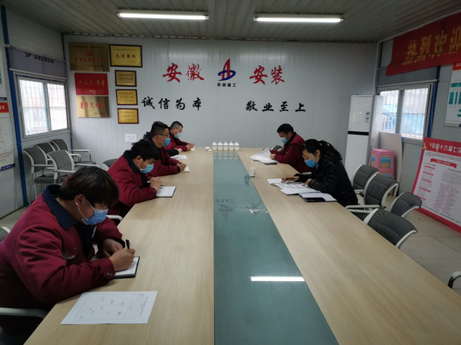 支部分別通過黨員視頻會、項目例會、團支部會議等多種形式學習宣貫安徽建工控股一屆七次職代會精神、安徽安裝第十六屆七次職代會精神、《安徽建工集團控股有限公司疫情防控期間復工管理方案》及《安徽安裝公司關于切實做好復工復產前疫情防控工作的通知》等疫情防控相關文件精神。與此同時,為營造濃厚的學習氛圍,還在項目現場制作張貼宣傳展板,并把學習資料上傳到分公司QQ工作群,把職代會精神和疫情防控文件宣傳至項目一線。