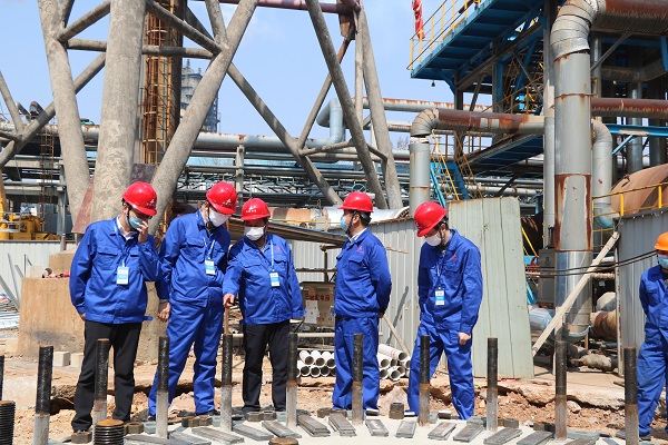 3月18日上午,公司副總經(jīng)理高飛一行赴安慶分公司承攬的“安慶石化Ⅰ、Ⅱ硫磺增設(shè)煙氣后堿洗流程項(xiàng)目”調(diào)研指導(dǎo)大型設(shè)備吊裝工作。