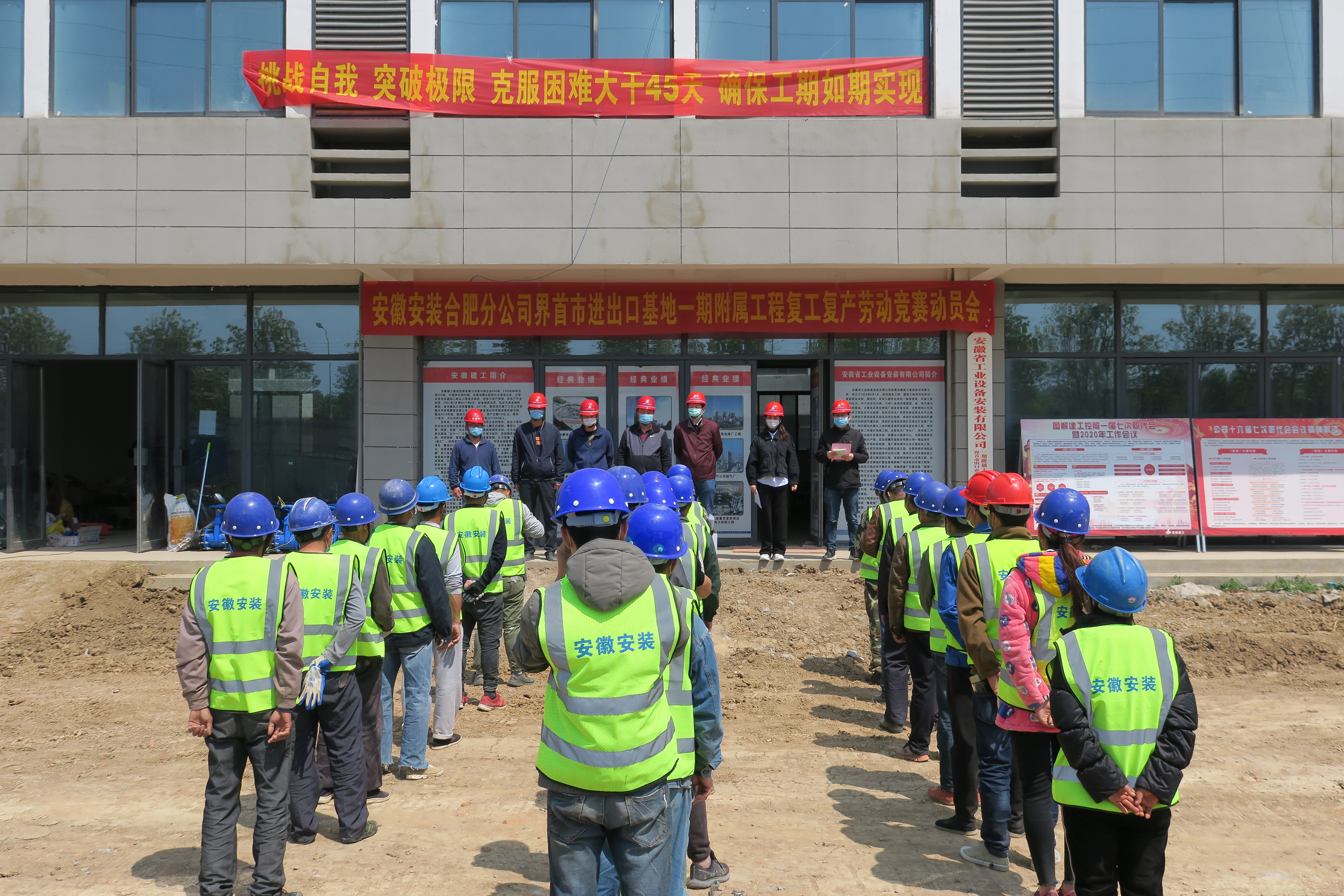 4月13日上午,合肥分公司界首出口企業培育基地一期工程項目召開“大干45天”勞動競賽動員會。分公司黨支部書記胡迎東出席會議并講話,分公司安全管理部主任孔微明主持會議,項目部全體管理人員及施工班組參會。