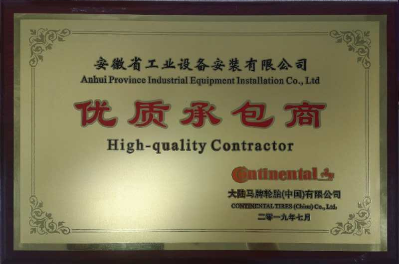 近日,大陸馬牌輪胎(中國)有限公司授予安徽安裝公司“優質承包商”獎牌和“36萬安全工時”獎杯。