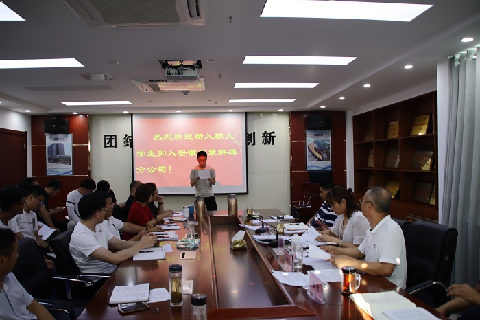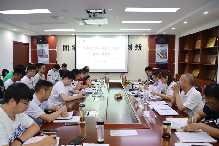 7月8日下午,蚌埠分公司召開了2020年半年度工作會暨新員工歡迎會。分公司領導班子、各部門員工、所屬項目部負責人及新入職大學生參加會議。
