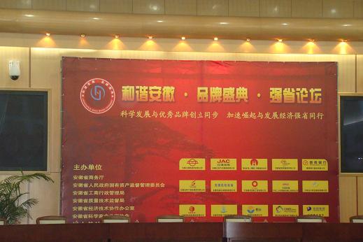 為推進(jìn)品牌強(qiáng)省戰(zhàn)略,加快安徽省品牌的發(fā)展步伐,實(shí)現(xiàn)安徽經(jīng)濟(jì)全面和諧發(fā)展,由安徽省商務(wù)廳、安徽省人民政府國(guó)有資產(chǎn)監(jiān)督管理委員會(huì)、安徽省工商行政管理局、安徽省質(zhì)量技術(shù)監(jiān)督局、安徽省經(jīng)濟(jì)技術(shù)協(xié)作辦公室和安徽省科學(xué)家企業(yè)家協(xié)會(huì)聯(lián)合舉辦的“和諧安徽·品牌盛典·強(qiáng)省論壇”活動(dòng),于2009年7月28日在省人大會(huì)議中心隆重召開(kāi)。本次論壇以“科學(xué)發(fā)展與優(yōu)秀品牌創(chuàng)立同步,加速崛起與發(fā)展經(jīng)濟(jì)強(qiáng)省同行”為主題。公司總經(jīng)理王軍邦先生應(yīng)邀參加論壇活動(dòng)。