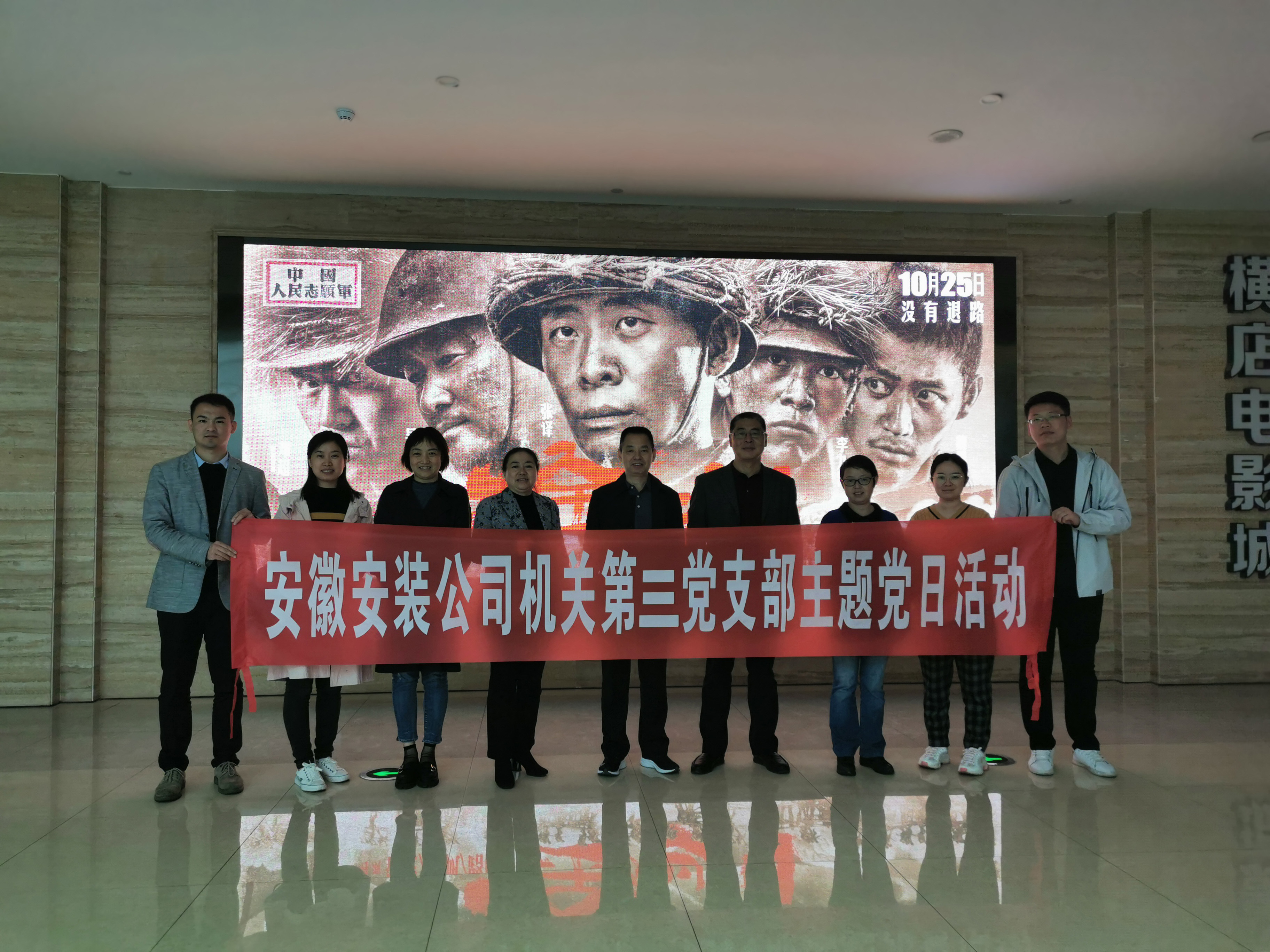 為紀念抗美援朝偉大戰爭,向中國人民志愿軍致敬,20201026日,機關第三黨支部組織全體黨員觀看抗美援朝主題電影《金剛川》。公司黨委書記、董事長胡六中,副總經理李原及總會計師張元斌以普通黨員身份參加。
