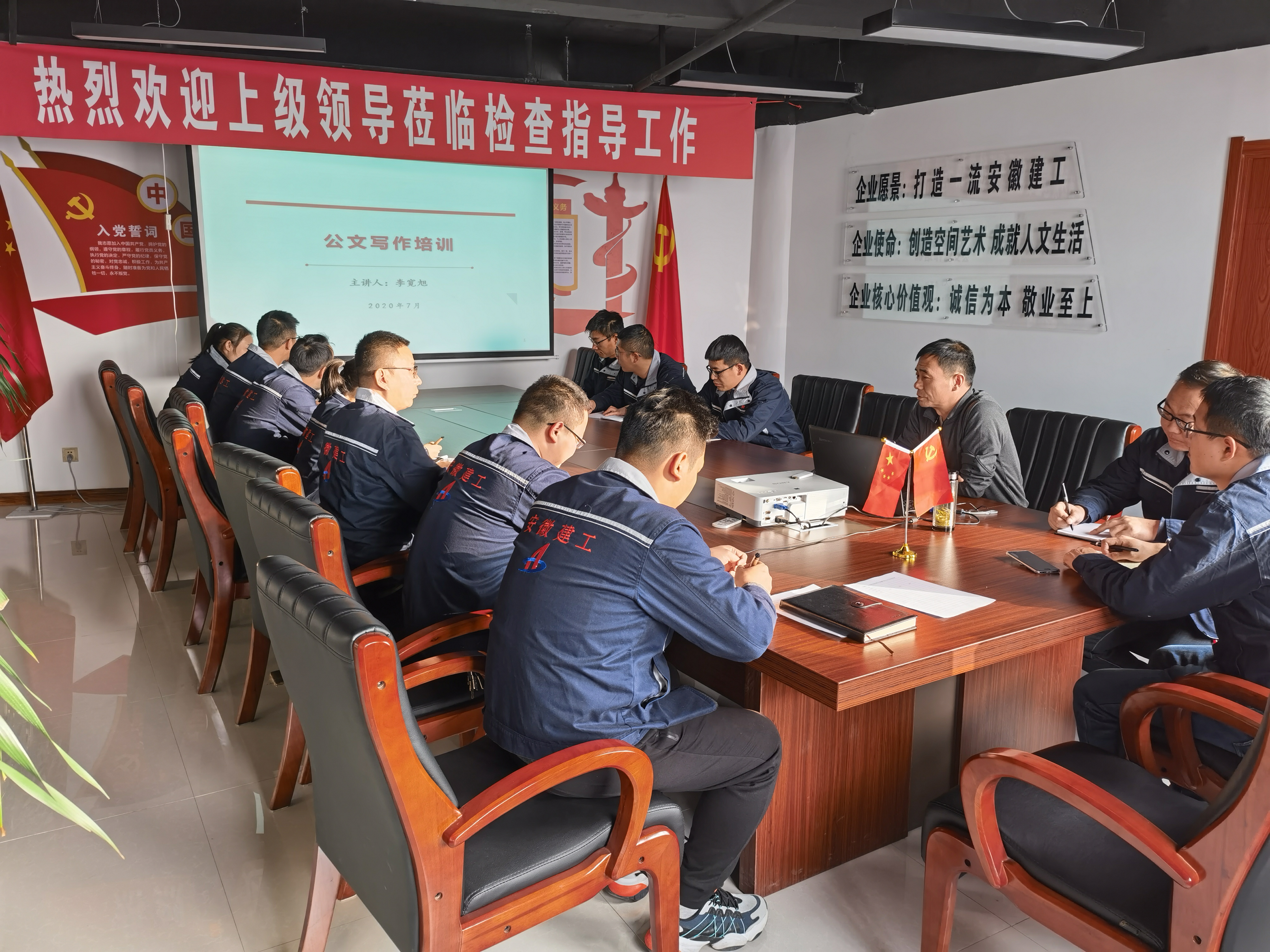 為構(gòu)建學習型分公司,促進常用公文管理規(guī)范化、標準化,提高全員公文寫作能力,12月11日下午,新疆烏蘇分公司組織開展常用公文寫作培訓,公司副總經(jīng)理、分公司黨支部書記、經(jīng)理王軍,分公司領(lǐng)導(dǎo)班子,科室全體人員,項目管理人員參加了培訓。此次培訓由公司紀委書記、工會主席李寬旭主講。