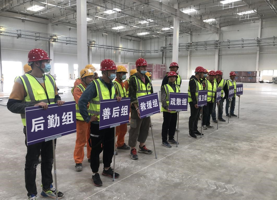 此次應急演練的主要內容有火災撲救、人員疏散和傷員救護等模擬演練,讓員工了解在發生安全事故時如何進行處置及自救、護救。為了保證本次演練活動順利進行,項目部圍繞“安全第一,確保有序,責任明確,落實細節”的原則,認真組織安排人員參與,根據實際情況確定演練指揮、應急疏散、撲救滅火、醫療救護等小組,并在活動開始前內部進行了預演練。