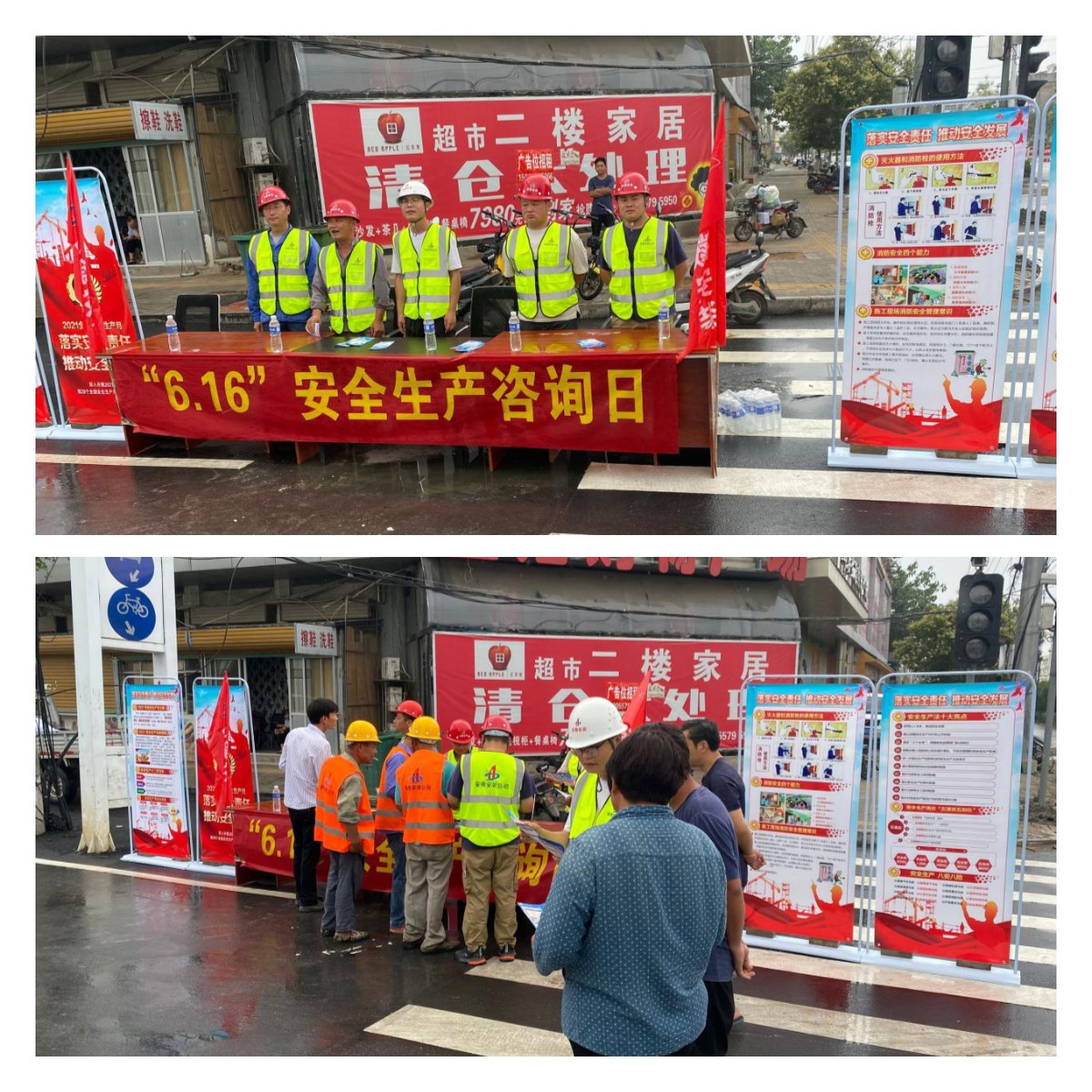 6月16日,項目部圍繞“落實安全責任,推動安全發展”安全月主題,在靈璧縣迎賓大道設置咨詢展臺,發放安全宣傳手冊,近距離宣傳安全生產方針政策、法律法規、應急知識和防災救災常識,開展安全宣傳咨詢,進一步增強廣大從業人員和社會公眾對安全生產的認識和理解。