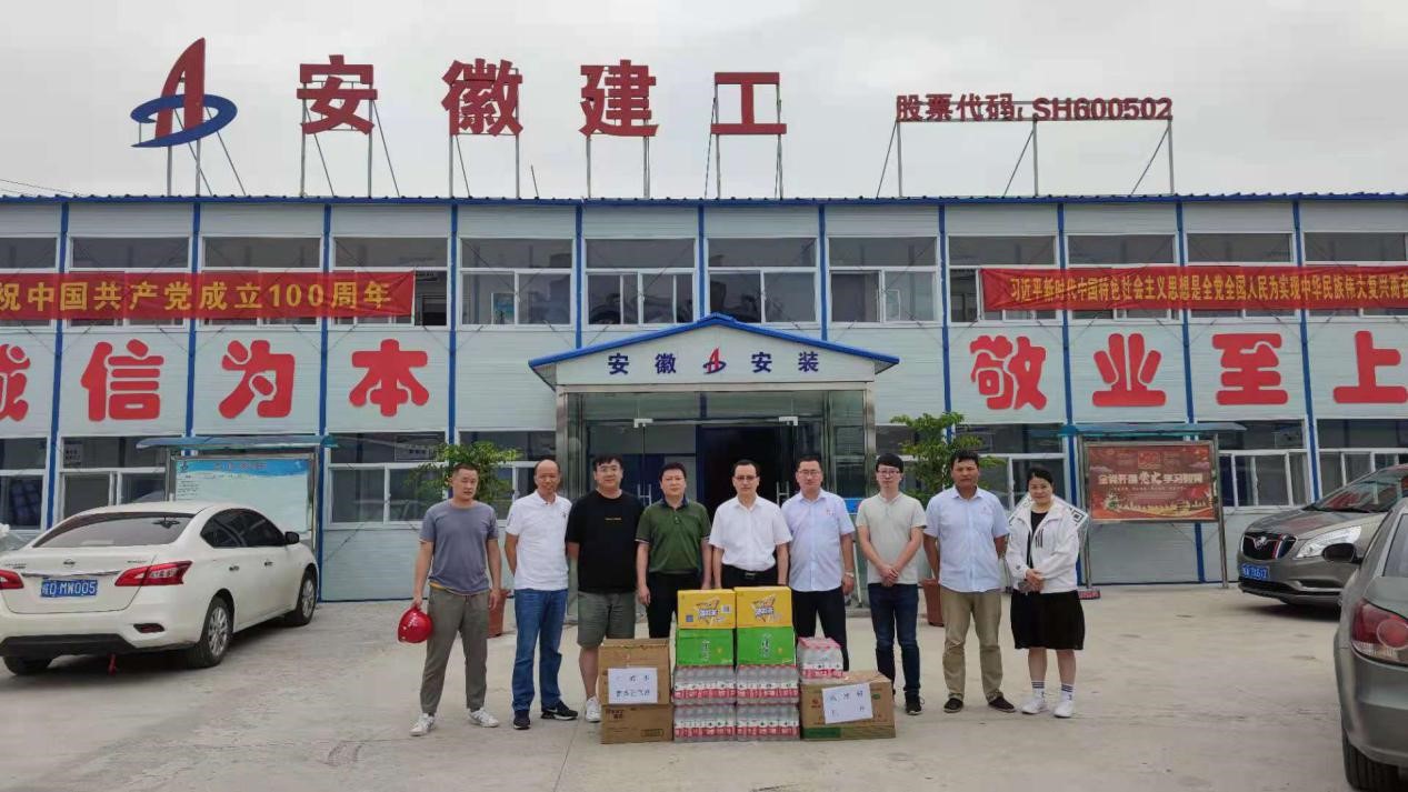 6月21日中午,室外溫度已超過35度,房建(裝飾)分公司黨支部書記王偉來到安徽壹石通化學(xué)科技廠房項(xiàng)目,實(shí)地看望和慰問了項(xiàng)目員工,為他們送去仁丹、藿香正氣口服液、十滴水、飲料、藥品等防暑降溫物品并與項(xiàng)目同志進(jìn)行了座談交流。