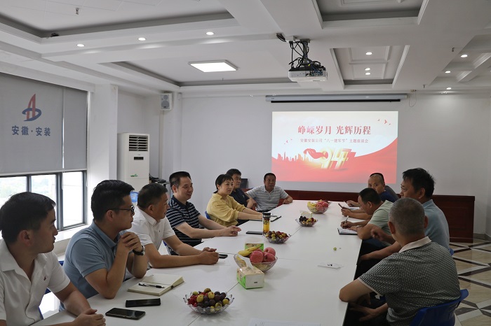 2021年8月1日是中國人民解放軍建軍94周年,8月2日,安徽安裝公司組織召開了“八一”建軍節(jié)主題座談會。座談會由公司工會副主席、人力資源部經理王敏主持,黨委書記、董事長胡六中出席,10名公司在職的退伍軍人參加了座談會。
