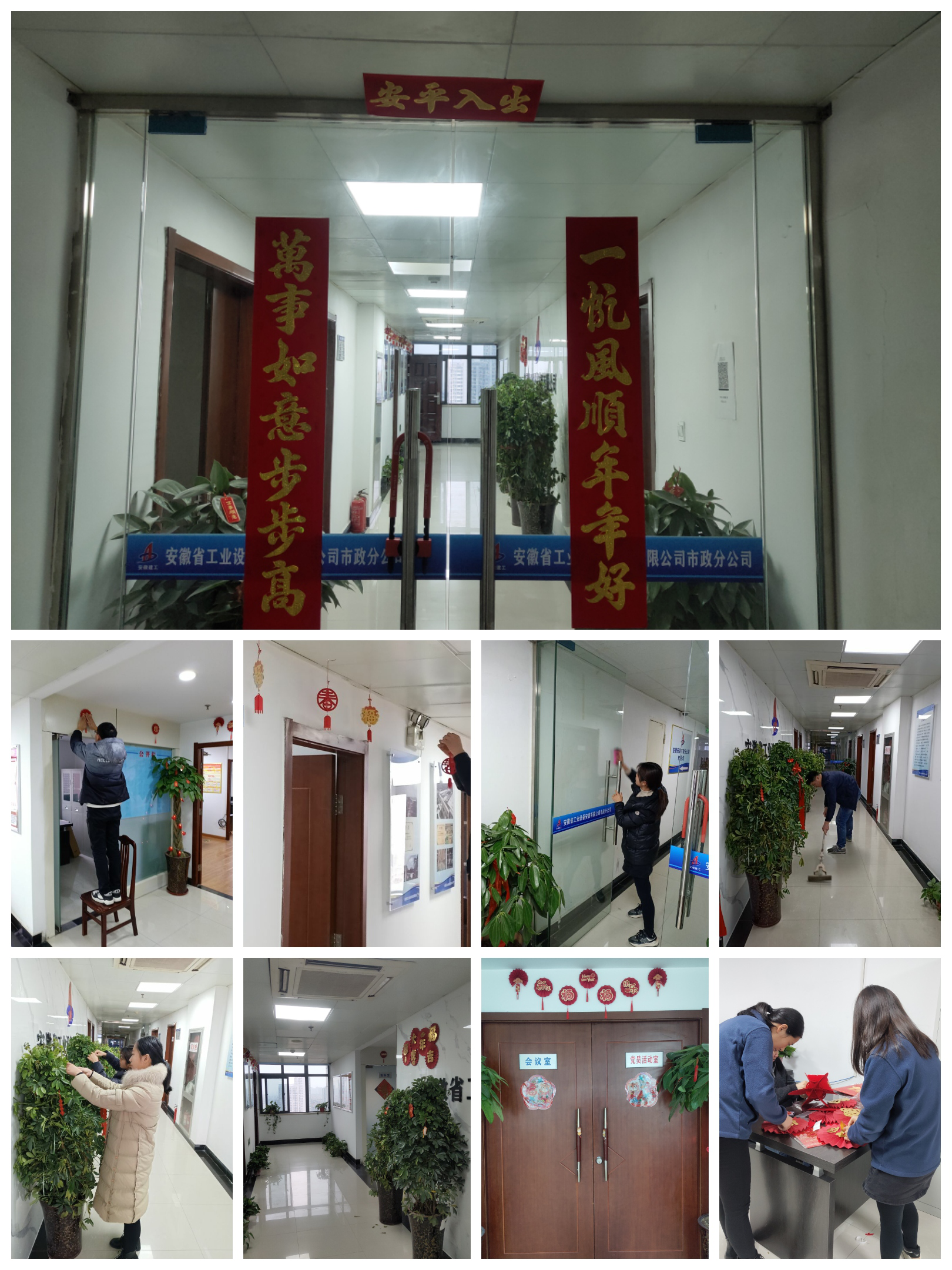 作為市政分公司掛牌成立后的第一個(gè)春節(jié),工會(huì)提前準(zhǔn)備好拉花、拉旗等喜慶裝飾物,號(hào)召機(jī)關(guān)青年、團(tuán)員自己動(dòng)手張貼。此次活動(dòng)得到大家的積極響應(yīng),員工們齊心協(xié)力、分工協(xié)作對(duì)辦公區(qū)域進(jìn)行衛(wèi)生清潔與氛圍裝點(diǎn),在機(jī)關(guān)走廊懸掛喜慶裝飾品,讓分公司處處充滿濃濃年味,紅紅火火、喜氣洋洋地迎接新一年的到來(lái)。