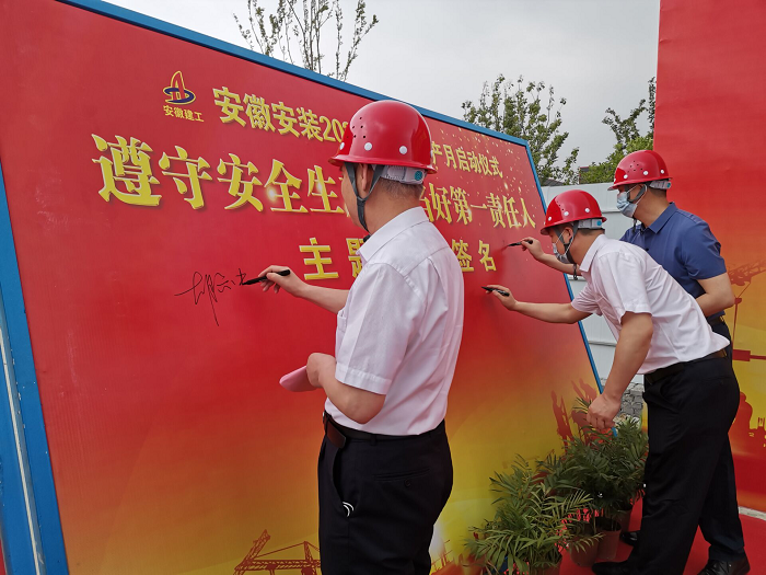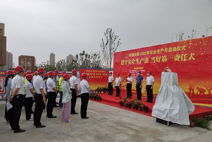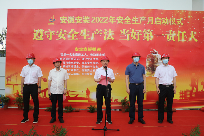 在全國第21個“安全生產(chǎn)月”活動到來之際,5月30日上午,安徽安裝公司2022年“安全生產(chǎn)月”啟動儀式在年配套1000萬臺新能源汽車及年產(chǎn)2億臺制冷空調(diào)壓縮機關(guān)鍵性能件制造基地項目舉行。公司黨委書記、董事長胡六中,紀委書記、工會主席李楊,副總經(jīng)理趙伯平,總工程師吳繼成及機關(guān)各部門、各分公司代表參加了本次活動。