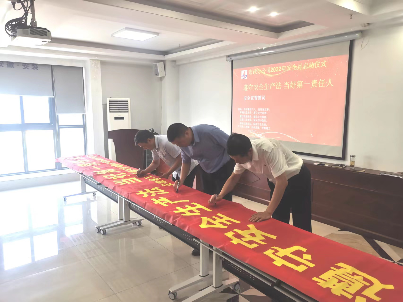 會議開始前首先舉行了市政分公司2022年安全月啟動儀式,分公司副經(jīng)理黃彥濤宣讀了第一責任人倡議書,作了分公司安全生產(chǎn)月動員講話,與會人員集體安全宣誓,并在安全月主題條幅上簽名。