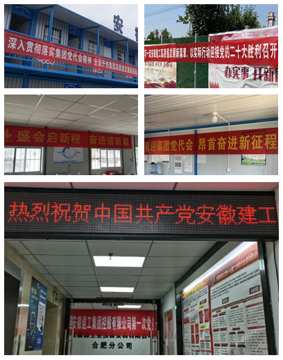 分公司黨支部還結合分公司班子理論(擴大)學習會、黨小組(擴大)學習會、宣傳櫥窗、橫幅標語、LED屏等多種形式,大力營造學習好、宣傳好、貫徹好建工控股第一次黨代會精神的濃厚氛圍,確保大會精神入耳、入腦、入心。