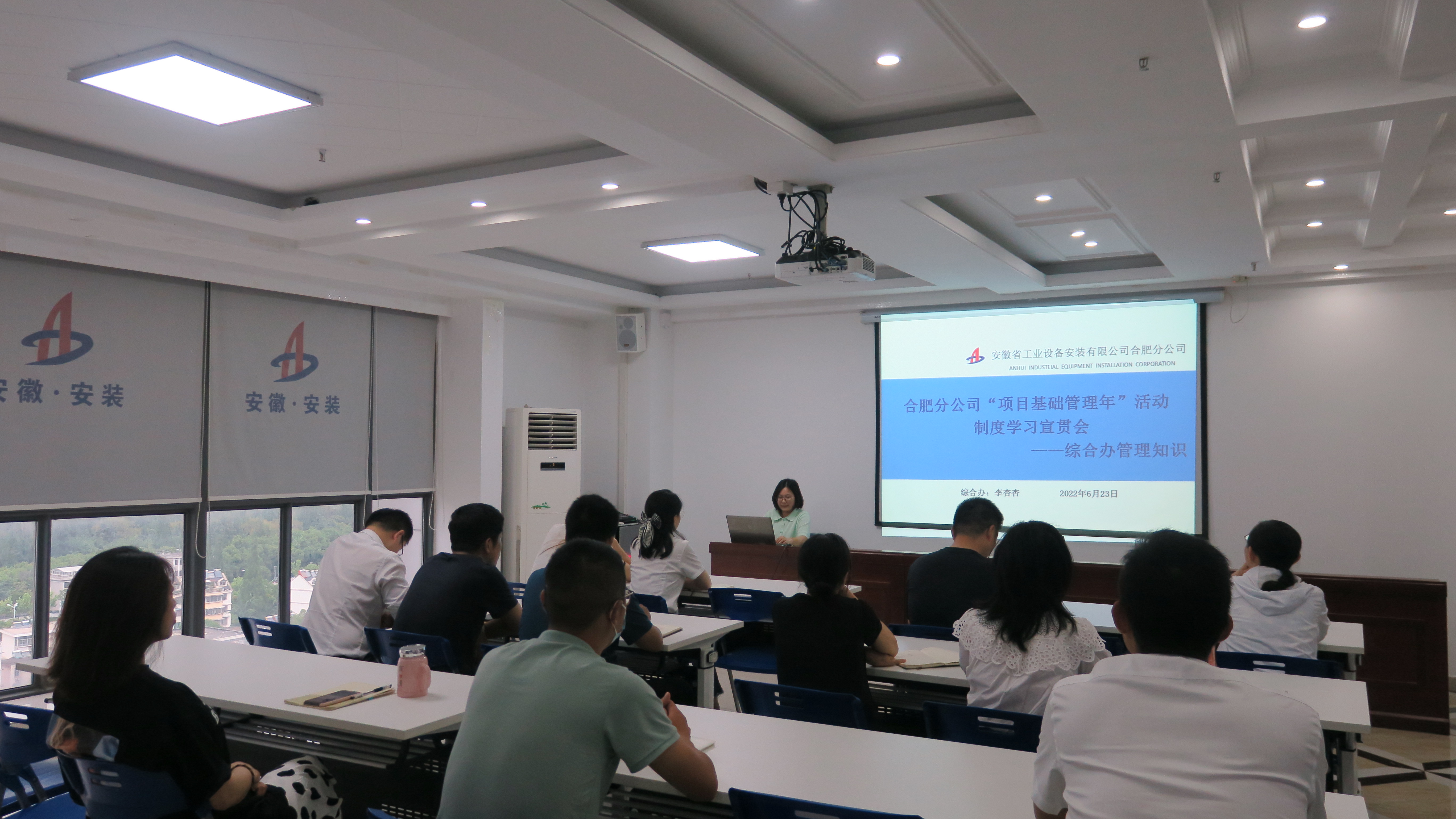 根據(jù)合肥分公司“項(xiàng)目管理年”活動學(xué)習(xí)培訓(xùn)計(jì)劃安排,6月23日下午,分公司組織開展了第三期“項(xiàng)目管理年”活動制度學(xué)習(xí)會,由分公司綜合辦公室李杏杏宣貫公司辦公室、人力資源相關(guān)制度。分公司領(lǐng)導(dǎo)班子成員及機(jī)關(guān)員工參會,外地項(xiàng)目以視頻形式參會。