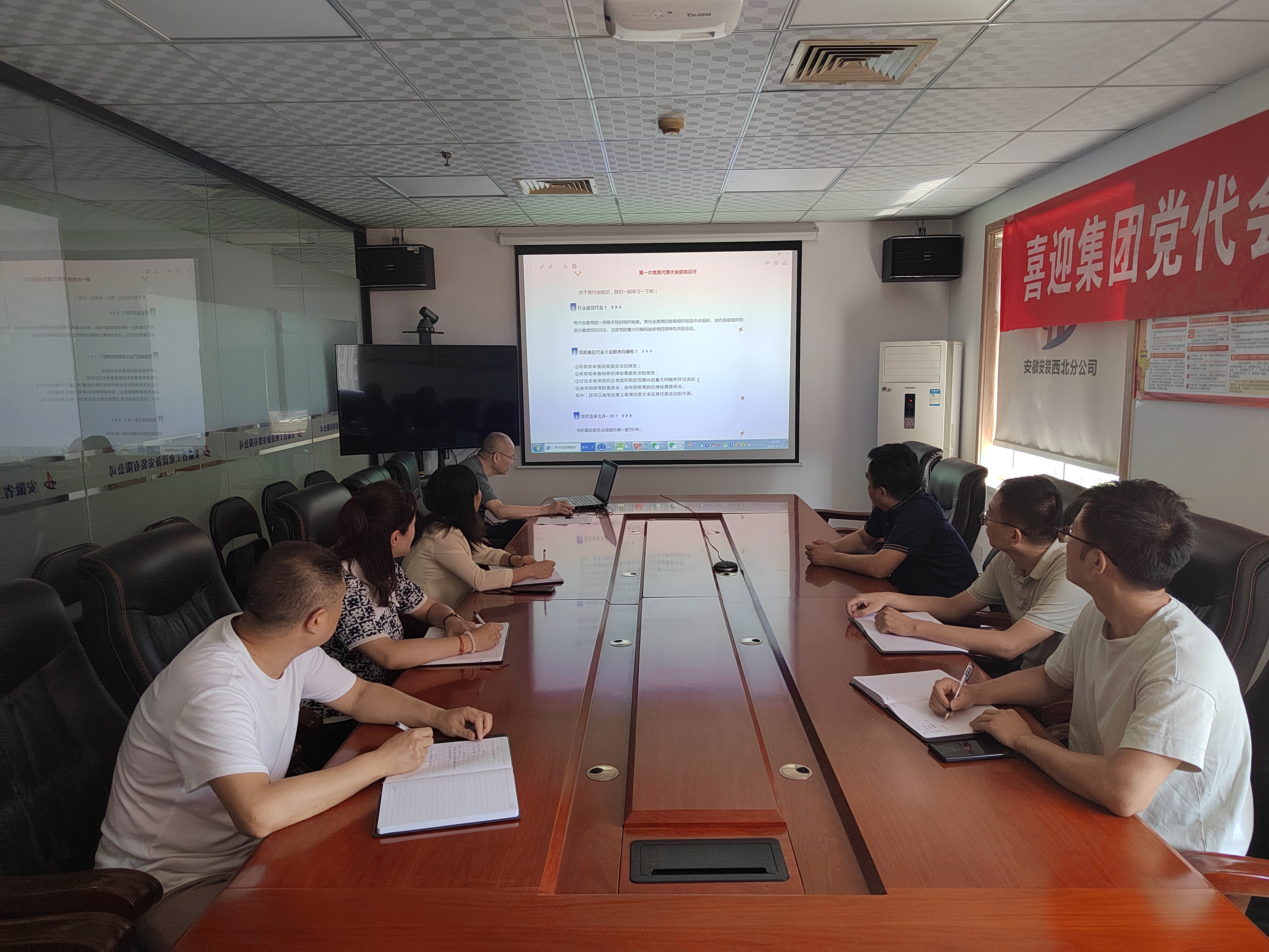 6月27日,陜西分公司組織召開專題學習會,集中學習安徽建工集團第一次黨代會精神。會議由分公司黨支部書記江輝主持,分公司領導班子成員、機關黨員干部職工參加此次會議。