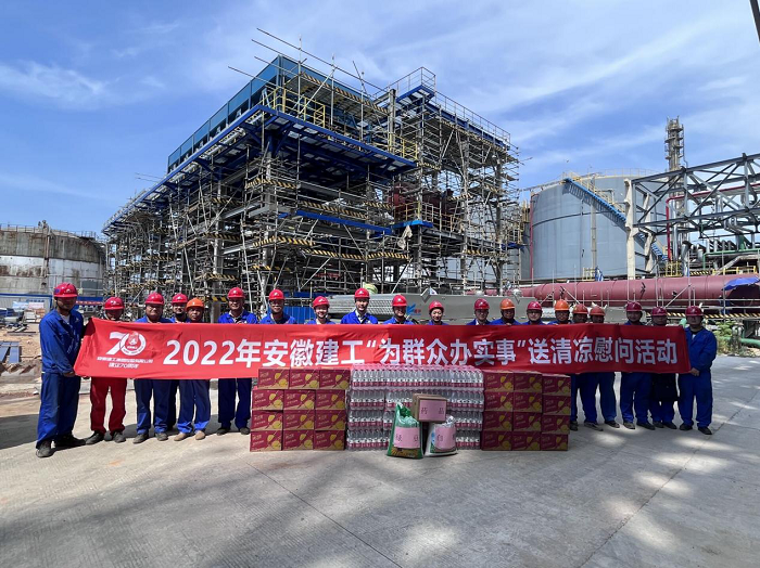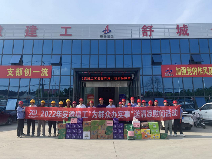 公司工會先后來到岳西中學建設項目(一期)安裝工程項目、中石化安慶分公司煉油轉化工200噸/小時污水汽提裝置項目、舒城第一中學遷建項目、四水廠DN1800、DN1400供水管道遷建工程管網項目、花園大道(徽州大道-包河大道)道路工程項目、定遠壹石通化學科技廠房項目、凱盛科技超薄柔性玻璃(UTG)二期5#、6#車間及配套設施工程項目,給廣大一線職工送去白糖、綠豆、礦泉水、飲料、藥品等防暑降溫物品,將工會組織的關心關愛傳遞給項目職工。