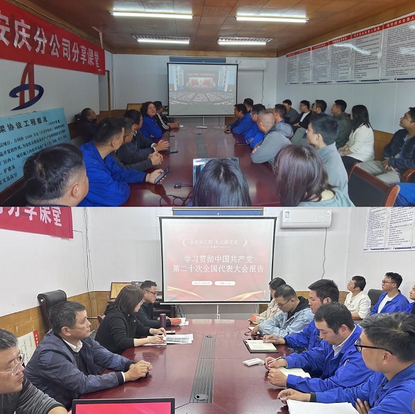 安慶分公司黨支部精心組織及時學。組織全體員工收聽收看黨的二十大開幕會、中共中央介紹解讀黨的二十大報告新聞發(fā)布會,通過電視、網(wǎng)絡、廣播等多種渠道及時了解和關注大會盛況,第一時間學習領會黨的二十大精神。組織購買《黨的二十大輔導讀本》、新修改的《中國共產(chǎn)黨章程》學習用書,向黨員干部發(fā)放,通過黨員大會、黨員活動日、黨員帶頭領學等形式,為全面深入學習黨的二十大精神,安慶分公司全體黨員領導干部堅持精研細讀黨的二十大報告、黨章等大會文件,全面系統(tǒng)地領會和把握黨的二十大精神,在真學真懂、真悟真用上作好表率、走在前列,帶動全分公司上下迅速掀起學習宣傳貫徹黨的二十大精神熱潮。