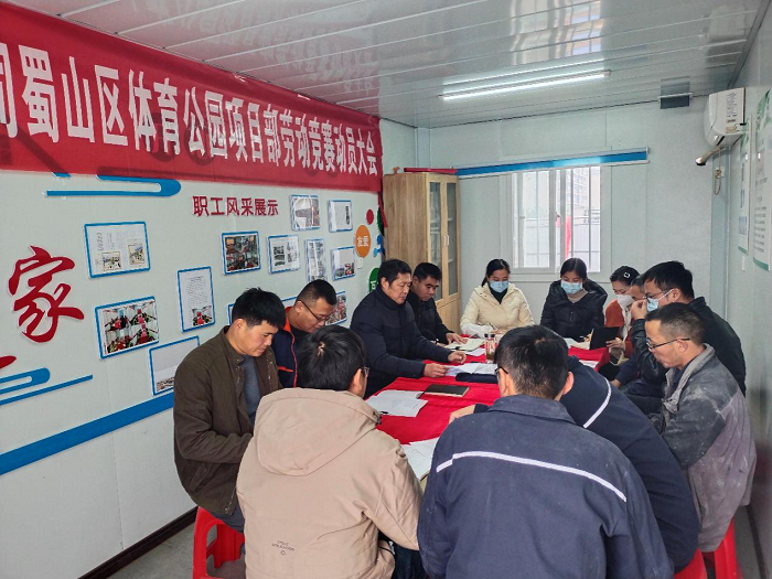 12月9日上午,市政分公司蜀山區(qū)體育公園安裝工程項(xiàng)目部在現(xiàn)場(chǎng)會(huì)議室召開(kāi)勞動(dòng)競(jìng)賽動(dòng)員會(huì)。分公司黨支部書(shū)記胡迎東、副經(jīng)理張漢軍及分公司勞動(dòng)競(jìng)賽領(lǐng)導(dǎo)小組成員出席會(huì)議,項(xiàng)目部全體管理人員及施工班組代表參會(huì)。會(huì)議由分公司工會(huì)副主席張曼主持。