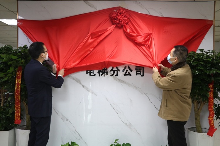 黨委書記、董事長胡六中和電梯分公司經理龍海健共同揭牌