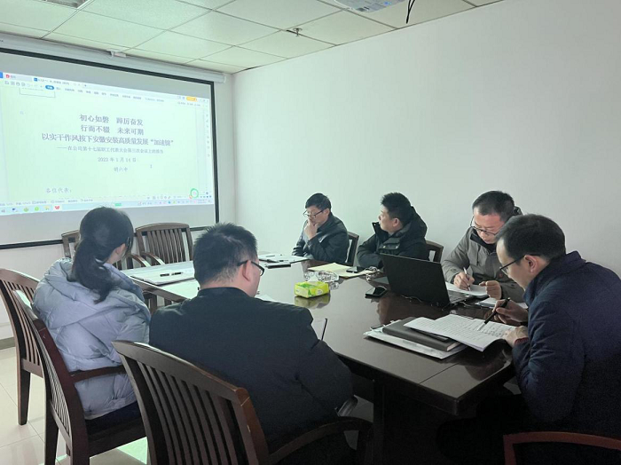 會上,分公司黨支部書記、經理龍海健重點宣貫、詳細解讀了公司黨委書記、董事長胡六中在公司十七屆三次職代會上所作的題為《初心如磐踔厲奮發行而不輟未來可期以實干作風按下安徽安裝高質量發展“加速鍵”》的報告精神,對分公司2023年度主要任務指標和重點工作進行了傳達部署。通過學習,分公司全體員工對公司2022年取得的成績有了深刻的認識,進一步明確了公司2023年的奮斗目標、工作思路和部署安排。