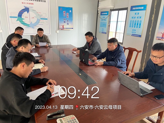 4月13日上午,蚌埠分公司“三個(gè)基地”項(xiàng)目負(fù)責(zé)人鄭衡赴“六安霍邱金巢云母”項(xiàng)目開展項(xiàng)目經(jīng)理學(xué)習(xí)交流交叉上課活動(dòng),項(xiàng)目全體管理人員參加此次學(xué)習(xí)交流活動(dòng)。