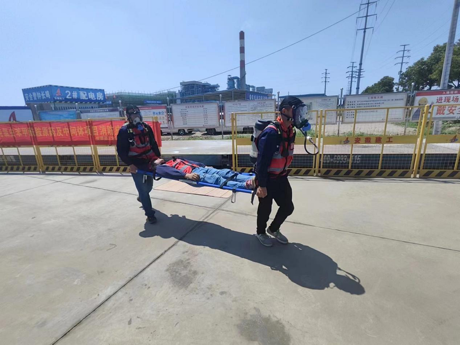 5月31日上午,安徽安裝蚌埠分公司團支部、安全管理部在“年產2000噸氯蟲笨甲胺原藥及中間體工程一期一標段總承包項目”聯合開展安全事故應急救援演練活動。公司工程管理部(安全管理部)副經理蔣秀正一行應邀出席此次演練活動,分公司班子成員、機關全體員工、所屬各項目代表、團員青年、監理及業主代表、輝隆項目部全體員工參加活動。