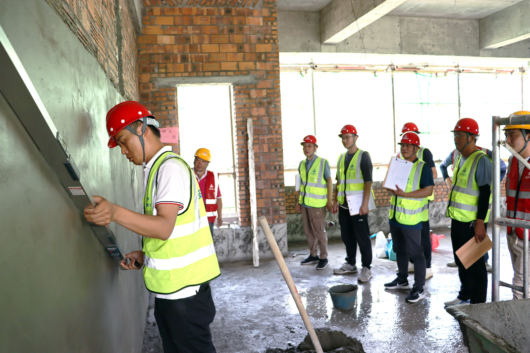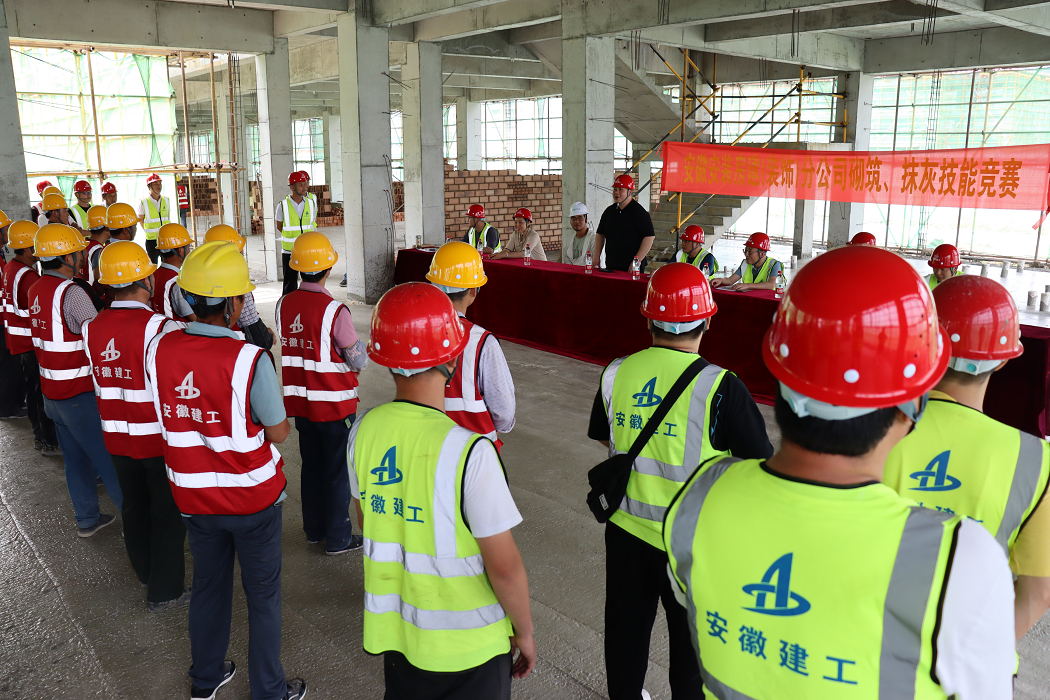 為深入學習宣傳貫徹習近平新時代中國特色社會主義思想和黨的二十大精神,大力弘揚工匠精神,厚植工匠文化,5月31日下午,房建(裝飾)分公司黨支部在阜南縣第一小學項目部舉行了“學思踐悟二十大 崗位比武促發展”砌筑、抹灰技能大賽活動。來自項目各勞務單位的14組參賽隊伍,20多名工人代表參加比賽。比賽邀請公司總工辦及分公司領導班子成員和部分項目經理擔任評委。