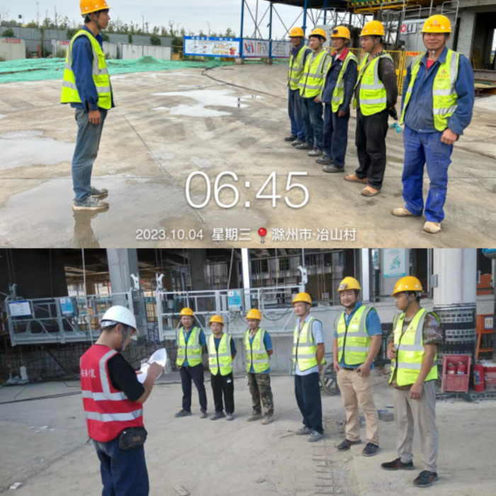 桃花科創(chuàng)項目、滁州天長項目在節(jié)假日期間,在崗施工作業(yè)人員,用自己的實際行動表達著對工作的熱愛,他們堅守崗位,堅持每日晨會開展電梯安裝知識培訓(xùn),強化安全防范意識,力求“安全第一”,保障安全與質(zhì)量,全力確保項目的安全平穩(wěn)運行。