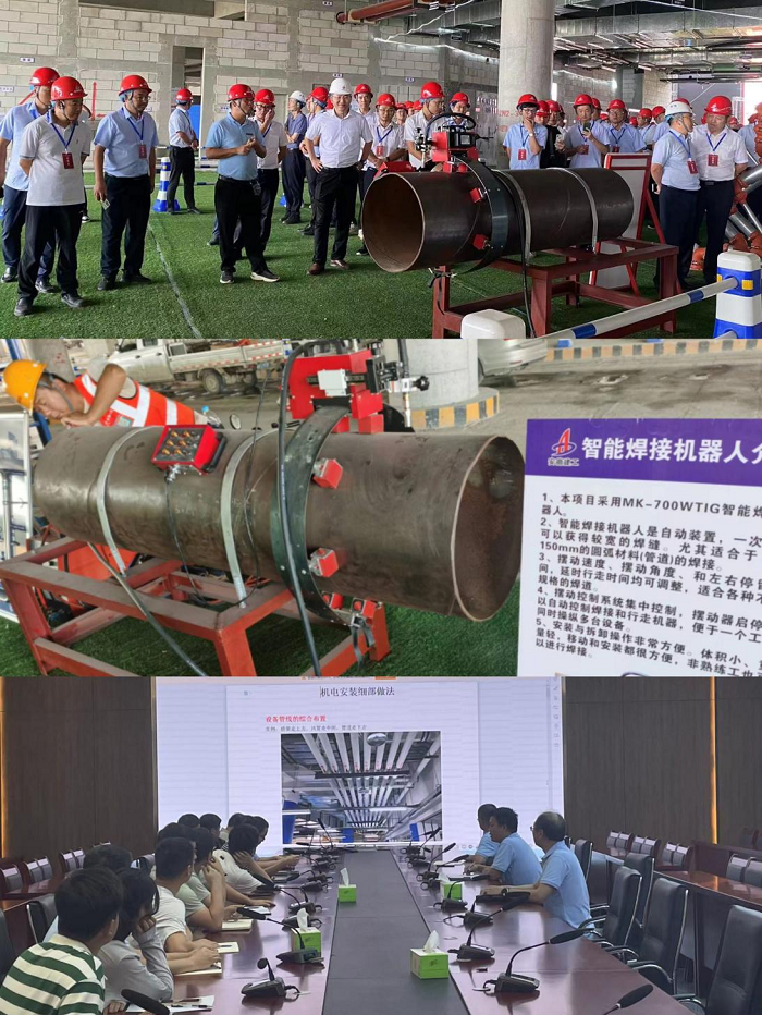 在技術(shù)攻關(guān)小組成員的帶領(lǐng)下,項(xiàng)目部積極響應(yīng)國(guó)家“雙碳”目標(biāo)和智能建造要求,創(chuàng)新運(yùn)用智能焊接機(jī)器人代替人工焊接,確保“樣板引路”穩(wěn)定高效實(shí)施。技術(shù)攻關(guān)小組成員經(jīng)過數(shù)次考察試驗(yàn),結(jié)合實(shí)際引入了MK-700WTIG管道焊接小車,它體積小,重量輕,安裝、拆卸和移動(dòng)方便,兼具標(biāo)準(zhǔn)角焊機(jī)簡(jiǎn)易輕便的特點(diǎn),避免了人為因素所造成的焊縫和質(zhì)量不高現(xiàn)象,可以大幅度提高焊接效率,減少材料損耗和施工返工率,進(jìn)一步提高生產(chǎn)效率。技術(shù)攻關(guān)小組先后編制了智能焊接機(jī)器人操作指南和工藝視頻,有效幫助指導(dǎo)現(xiàn)場(chǎng)項(xiàng)目人員更好地掌握運(yùn)用智能焊接機(jī)器人技術(shù)。通過“BIM+智能焊接機(jī)器人”方式,項(xiàng)目部形成了高質(zhì)量、高標(biāo)準(zhǔn)和穩(wěn)定的現(xiàn)場(chǎng)施工模式以及數(shù)字化、智能化的智慧管理模式,大力推動(dòng)項(xiàng)目智能建造體系的構(gòu)建,助推項(xiàng)目降本增效。