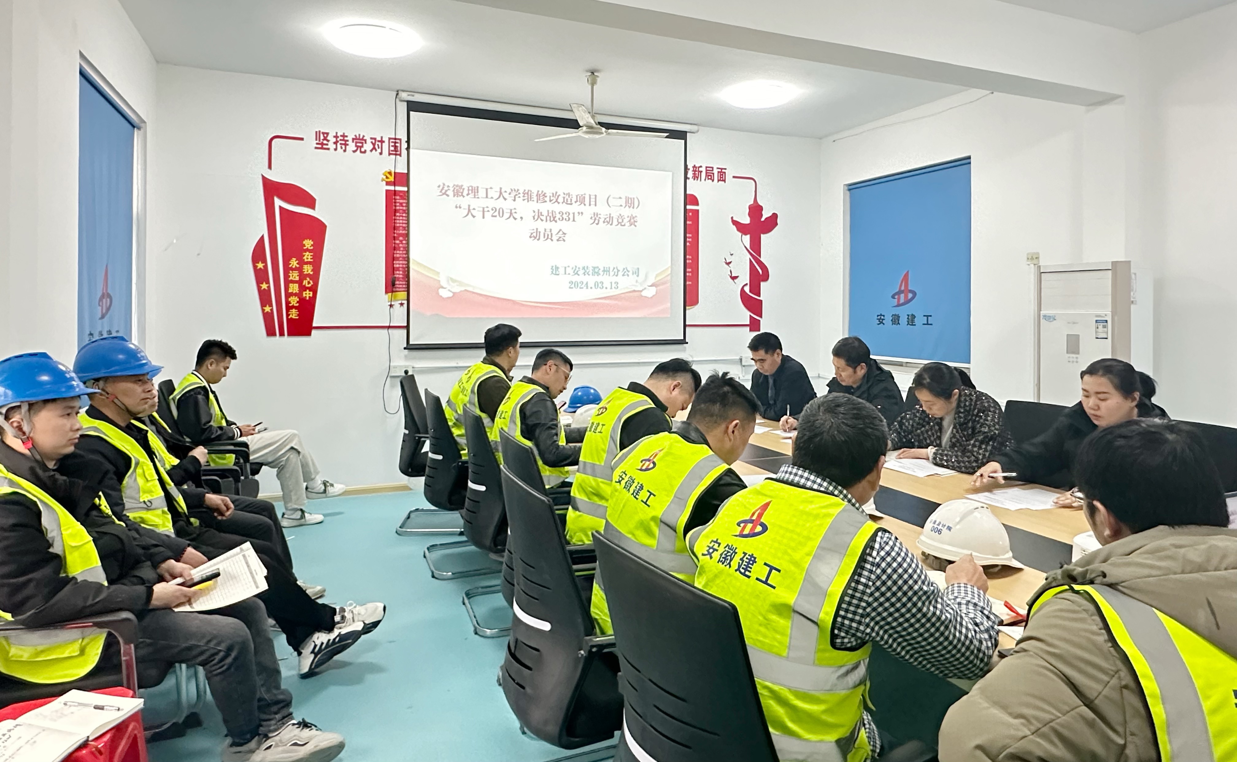 為深入學習貫徹集團三屆一次職代會暨2024年工作會議和公司十七屆四次職代會精神,全面落實“項目管理強化年”工作部署和集團2024年度“當好主人翁建功大發展”勞動競賽活動相關要求,3月13日下午,滁州分公司安徽理工大學維修改造(二期)項目在項目部現場召開了“大干20天、決戰3.31”勞動競賽動員會。分公司黨支部書記、副經理程茂麗,副經理張漢軍等勞動競賽領導小組成員出席會議,項目部全體管理人員及施工班組代表參會。