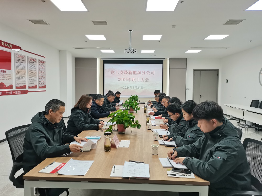 會上,新能源分公司經理康永軍作了題為《乘風破浪開新局蓄勢聚力謀發展以實干擔當譜寫分公司高質量發展新篇章》的工作報告。報告圍繞機構設置、隊伍建設、市場開發、項目管理、降本增效、社會效益等六個方面全面回顧了2023年度主要工作;并對2024年六個方面重點工作進行安排部署:一是深化內部組織架構,充分激發內生動力;二是狠抓新能源產業提速,厚植高質量發展新動能;三是細化施工過程管控,夯實項目基礎管理;四是嚴格把控資金安全,全力降低財務風險;五是突出以人為本理念,著力構建穩定和諧企業;六是強化黨建引領作用,助推企業高質量發展。
