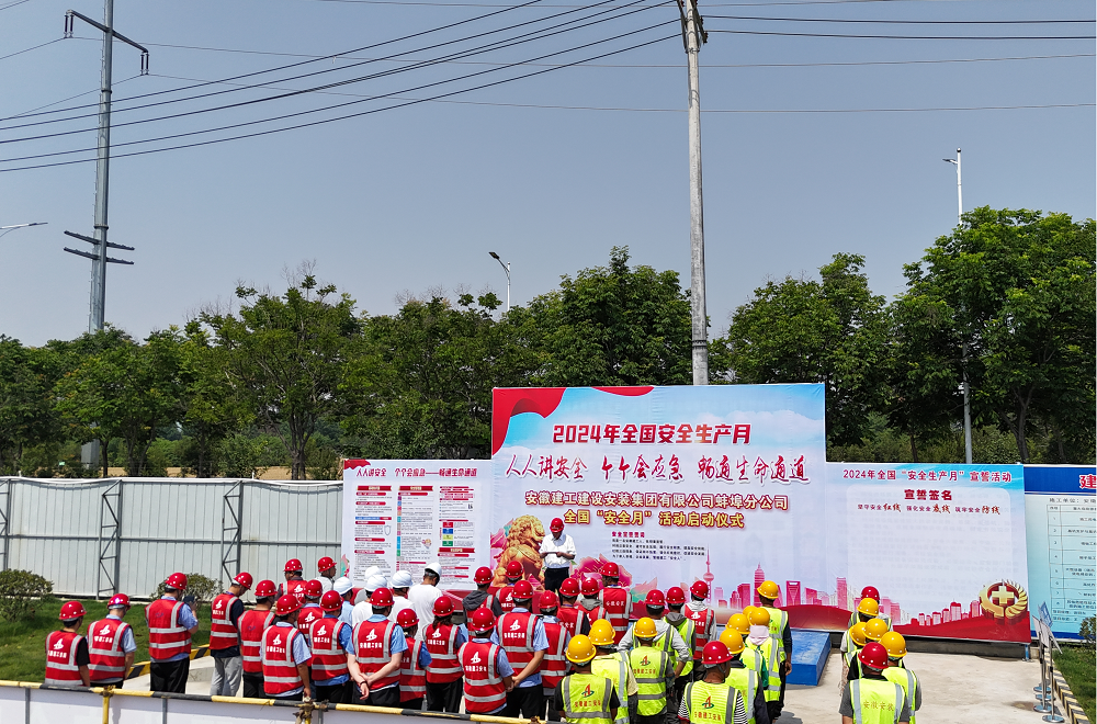 正值第23個全國“安全生產(chǎn)月”到來之際,5月31日上午,蚌埠分公司在宿州深巖項(xiàng)目開展“安全生產(chǎn)月”活動啟動儀式,分公司領(lǐng)導(dǎo)班子、部門負(fù)責(zé)人、各項(xiàng)目班子及安全負(fù)責(zé)人、深巖項(xiàng)目業(yè)主及監(jiān)理代表、項(xiàng)目部全體員工50余人參加本次啟動儀式。