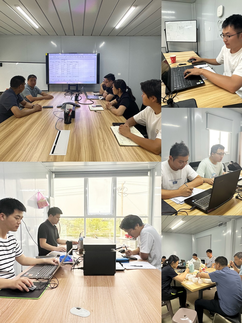 這是建工安裝新橋智能制造產業園一階段一標機電安裝工程項目端午節期間項目部現場的真實寫照。雖然是端午小長假,但項目上所有工作都在緊張有序進行中,項目部全體管理人員放棄節假日休息,加班加點開展項目前期材料詢價、工程量核算、圖紙審核、材料、施工進度以及勞動力進場計劃等安排,優化施工方案,科學合理配置施工設備,加快推進項目前期各項準備工作,確保項目后續工作順利開展。