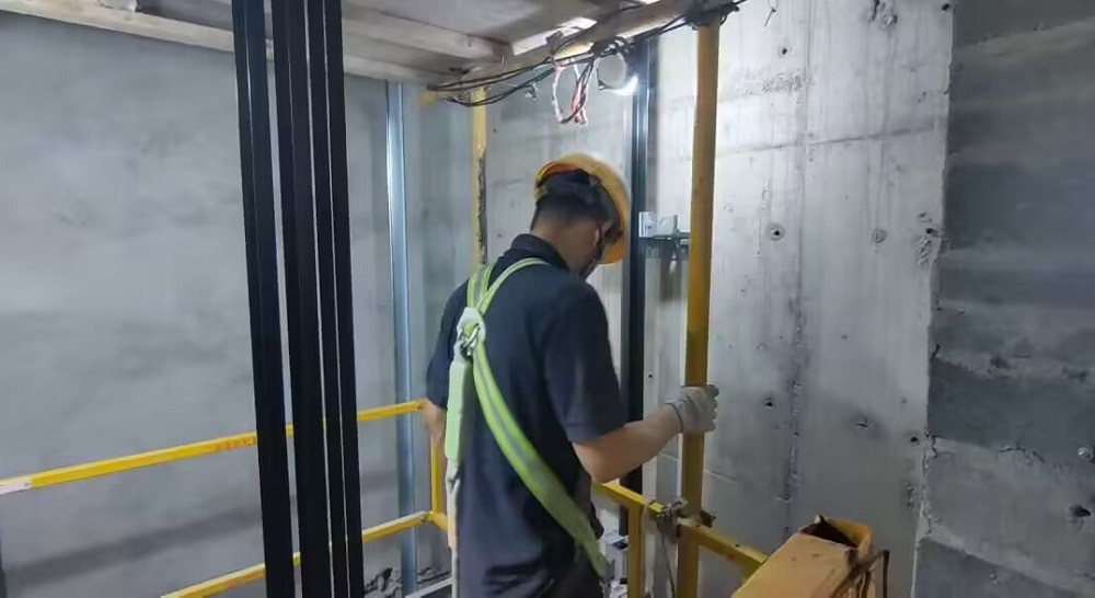 現(xiàn)場人員正在進(jìn)行到貨電梯檢查