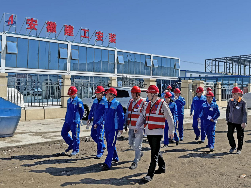 魏業秋一行深入施工現場,對各個施工區域進行了實地察看,詳細了解了項目建設進度、文明施工、安全管理、環境保護、質量控制等各方面情況。盡管本項目因圖紙未完善,導致開工時間滯后于合同約定節點一個多月,但項目團隊通過努力,成功壓縮工期半個月完成基礎交安工作,為后續廠房封閉奠定了堅實基礎。調研組充分肯定了建工安裝項目團隊所取得的成績,接著與項目管理人員就項目建設現狀及下一步總體建設工作計劃進行了交流。此次調研不僅讓工程總承包充分了解了項目的進展情況,同時也為我方下一步工作的順利開展奠定了堅實基礎。