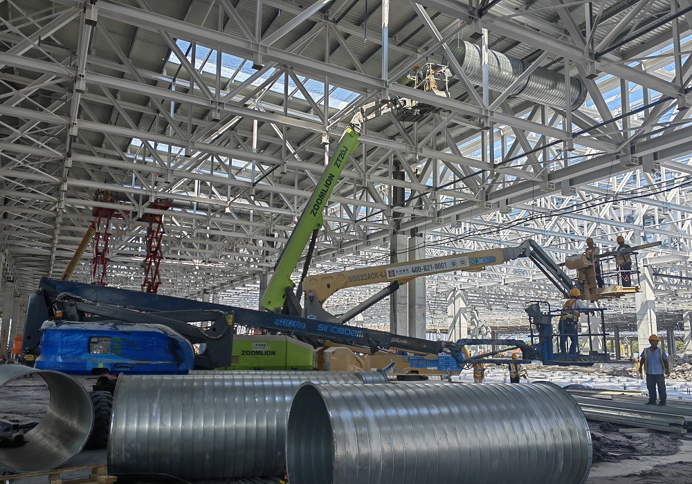 項目部全體管理人員緊抓施工節(jié)點,緊跟土建、鋼結構單位施工進度,全力統(tǒng)籌人、材、機合理高效入場,根據(jù)現(xiàn)場施工情況逐步優(yōu)化各專業(yè)施工方案,全力推進施工進度。目前,車間一整體防雷接地已完成60%,QA辦公樓預埋已完成90%,隨著土建單位工作面的交接,車間一5區(qū)、6區(qū)正在進行成品支架、虹吸雨水管道、排水管、通風管道等施工作業(yè)。