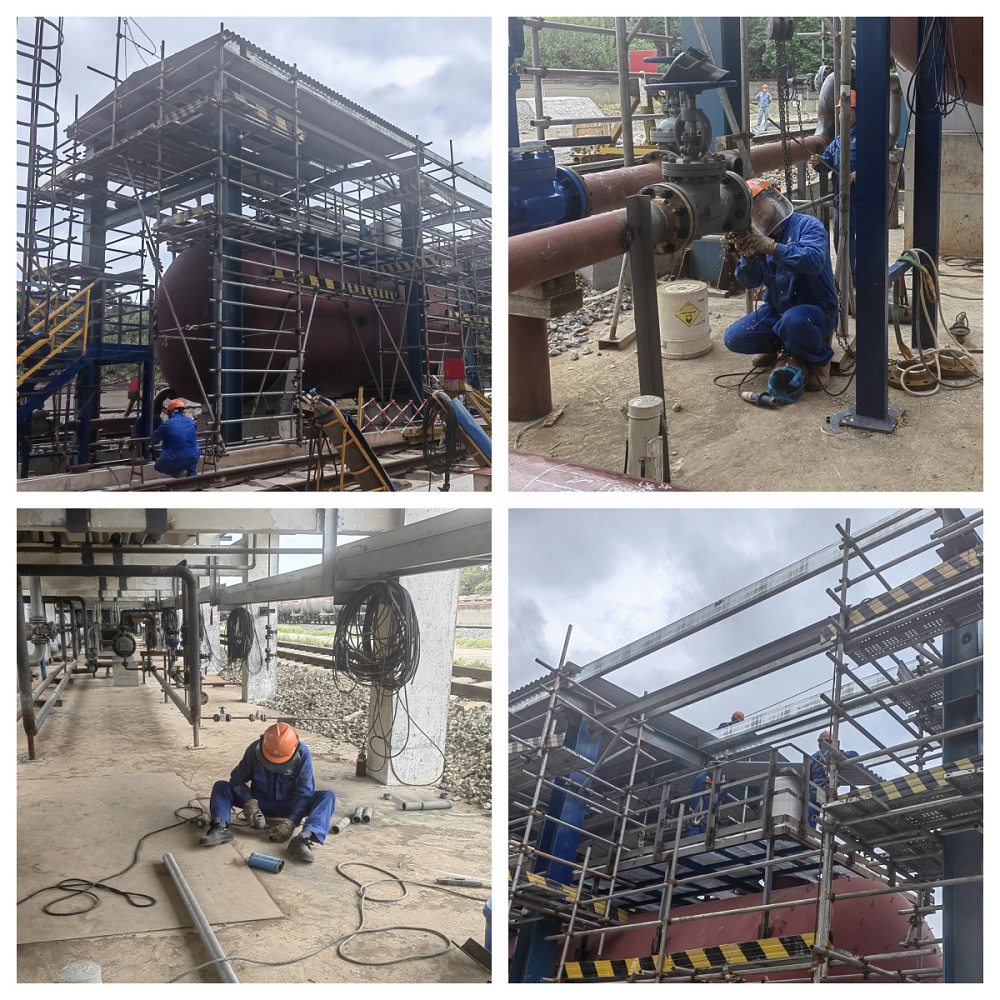安慶石化新增鐵路接卸純苯設(shè)施項(xiàng)目正在穩(wěn)步推進(jìn)。目前,已拆除舊鶴管6臺(tái)并安裝新鶴管6臺(tái),緩沖罐、污油罐、苯卸車(chē)泵也已安裝完畢,現(xiàn)進(jìn)行泵棚鋼結(jié)構(gòu)屋面彩鋼瓦和設(shè)備安裝工作。該項(xiàng)目總體進(jìn)度達(dá)80%,其中鐵路施工已結(jié)束并通過(guò)驗(yàn)收交于業(yè)主使用,剩余電氣設(shè)備、工藝管線等施工計(jì)劃于10月完成項(xiàng)目中交。