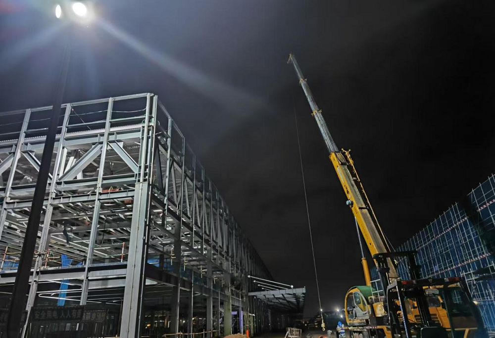 走進夜間施工現場,燈光如晝,機械轟鳴。從朝陽灑向施工廠區到夜幕降臨,從夜幕降臨又到朝陽再次升起,每一個忙碌的身影,都是對進度的追求、對品質的堅守、對安全的保障。